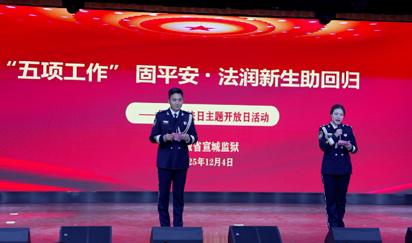 12月4日,安徽宣城监狱举办“‘五项工作’固平安・法润新生助回归”主题开放日并开展黄丝带帮教活动。民盟宣城市委会副主委章丰年、朱静应邀参加活动。
